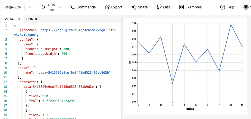 The cool thing about Vega charts is that they are self-contained, so you can copy-paste that info into the online Vega chart editor and see it.